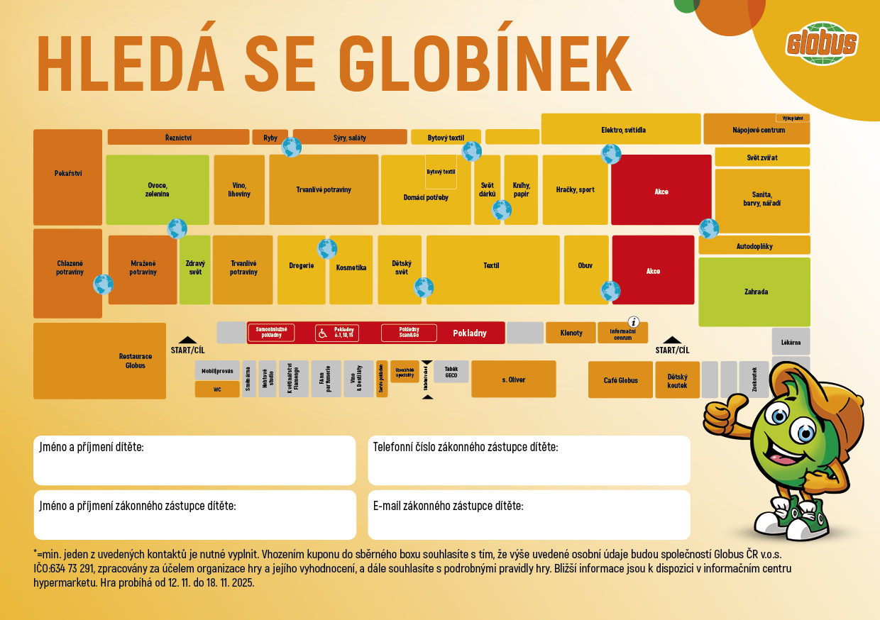 · Prozkoumejte Globus během nakupování a na plánku označte 5 míst, kde jste maskota Globínka našli.