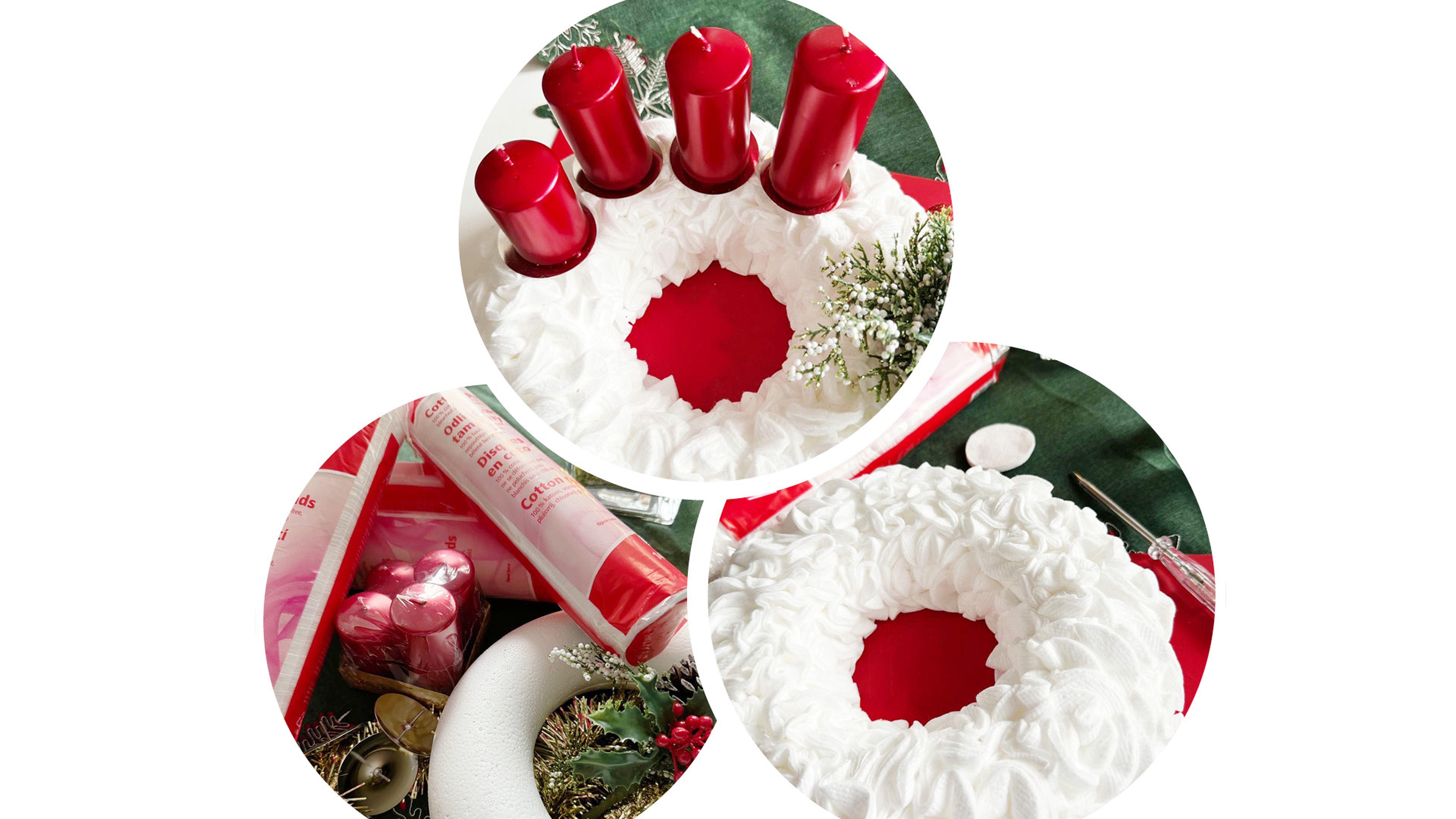 Ukážeme vám originální techniku výroby adventního věnce z vatových tampónků – jednoduchý nápad s působivým výsledkem!