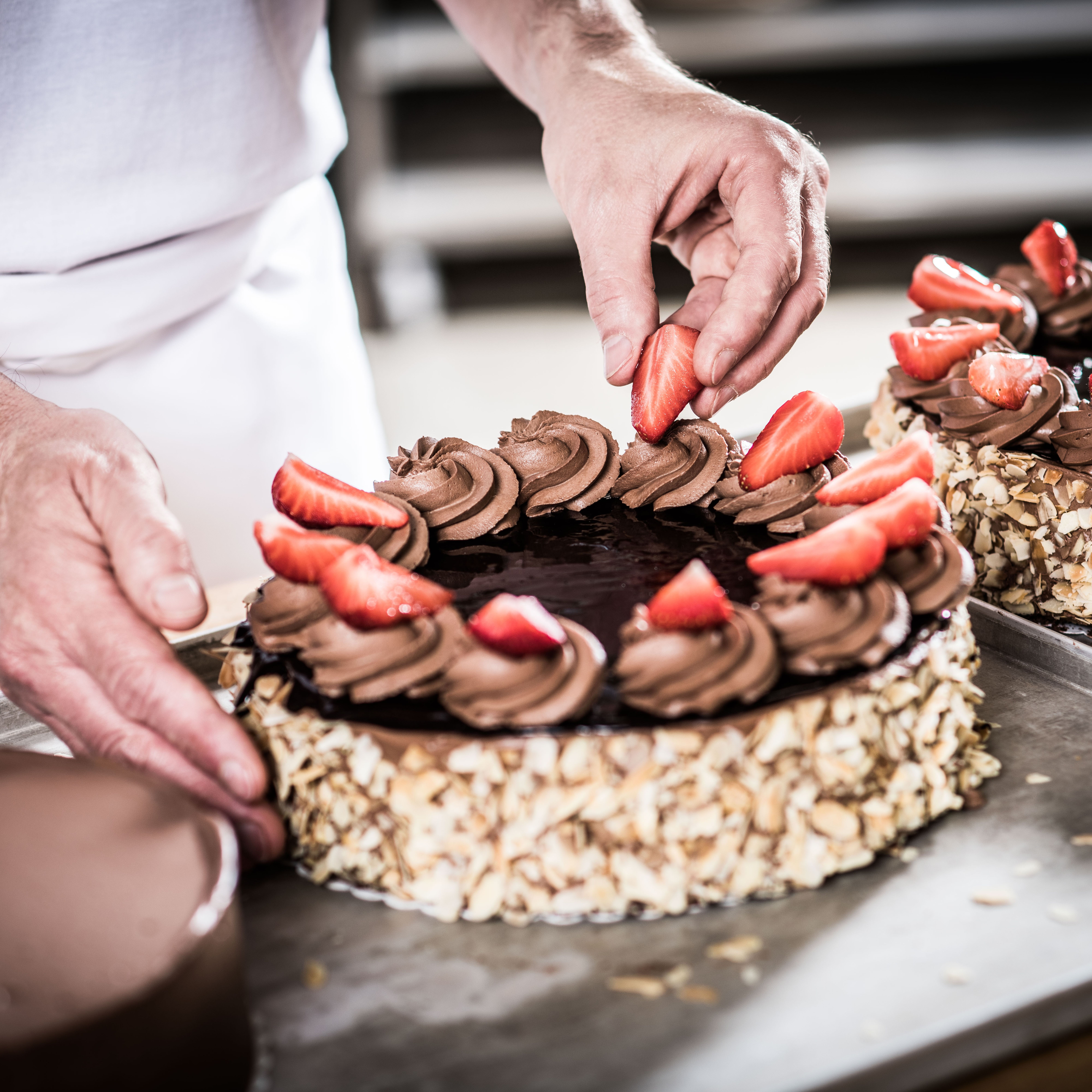 Dorty a zákusky pro vás vyrábíme poctivě od základu v zázemí každého našeho hypermarketu. Od upečení čerstvého korpusu až po naplnění tradičními máslovými krémy a ozdobení šlehačkou z pravé smetany.