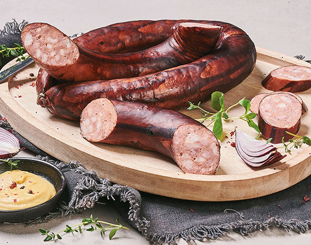 Dopřejte si Ostravskou klobásu Globus, vyráběnou ručně z vepřové kýty a boku. Má plnou chuť a skvěle se hodí k rychlé večeři nebo na studený talíř.